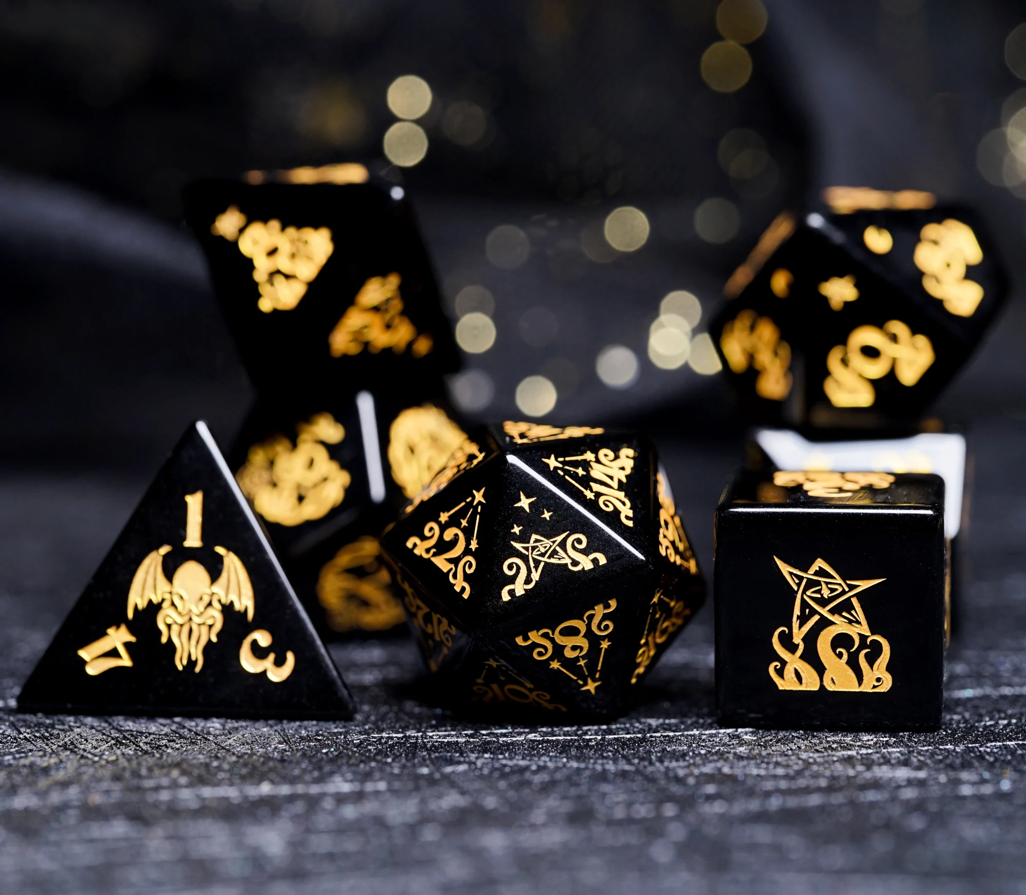 Natural Obsidian RPG Dice Gemstone Handmade Engraved Cthulhu Tentacle DND Dice Set Healing Crystal Reiki Stone Board Gaming Dice
